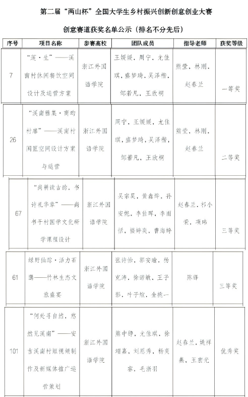 此次全国大学生乡村振兴大赛,经专家评审,共评出一等奖20项,二等奖30项,三等奖50项,优秀奖96项。