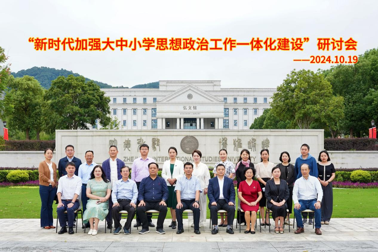 10月19日,“新时代加强大中小学思想政治工作一体化建设”研讨会在我校举行。来自全省思想政治教育领域的一线专家学者、教育局相关负责人、校长和名师齐聚浙外,展开深度交流研讨。