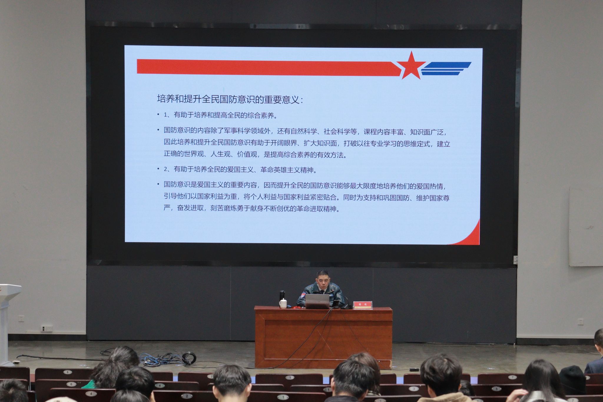 樊化结合自身工作,回顾历史、关照现实,从树立国防意识的重要性、树立什么样的国防意识和如何培养树立国防意识三个方面娓娓道来,把树立国防意识的战略思维和大学生成长成才紧密集合,鼓励学生把投身国防的报国情和专业学习的求学志紧密联系在一起,号召当代大学生积极投身国防事业,担负青年大学生的责任,履行使命担当。