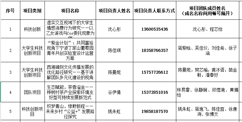 根据《浙江省大学生科技创新活动计划(新苗人才计划)实施办法(试行)》(团浙联〔2010〕13号)、《关于进一步规范浙江省大学生科技创新活动计划(新苗人才计划)项目管理的通知》要求和上级相关要求,新澳门六合彩走势图 组织开展2025年“新苗”人才计划项目申报工作。经组织动员、自主申报、专家评审等,院级立项项目名单如下: