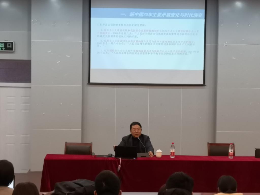 段治文教授新中国70年主要矛盾变化与时代发展、新中国70年马克思主义中国化与理论创新、新中国70年发展成就与制度自信、如何科学地认识新中国70年的历史演进四个方面展开论述,讲解党的十八大以来,以习近平同志为核心的党中央对世情、国情、党情的新认识与新判断,中国特色社会主义进入新时代的发展问题。