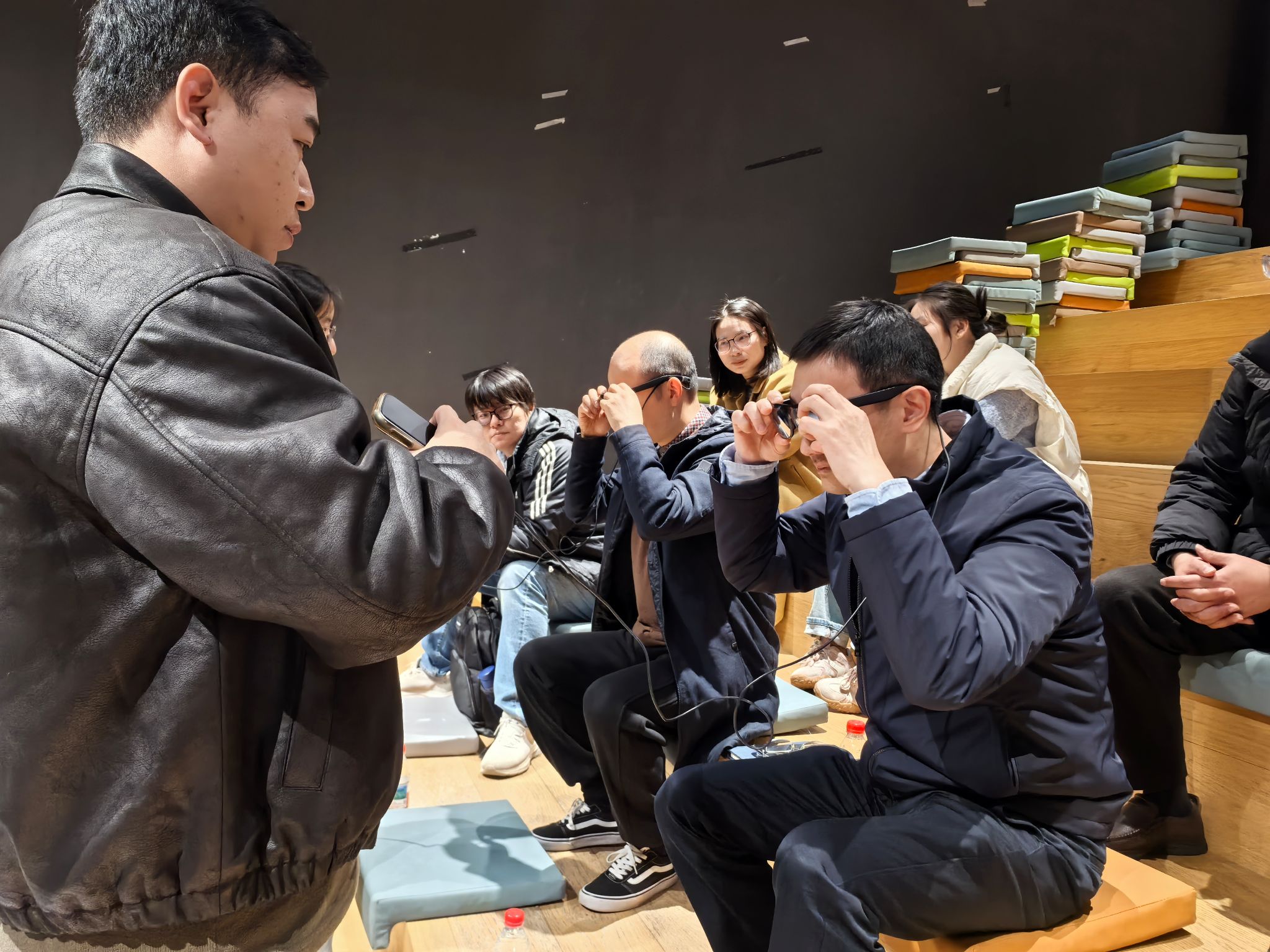 调研中,灵伴科技工作人员还现场引导大家佩戴智能眼镜,沉浸式体验了AR技术在各类场景中的应用效果。